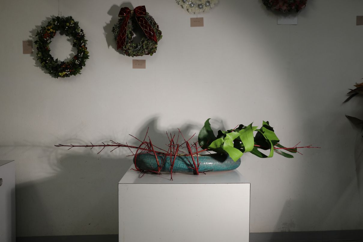 特徴ある線と面の花材の扱い方が面白い作品をご紹介いたします