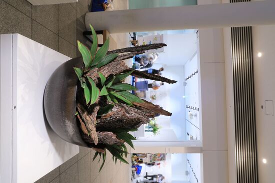 【花材】ヒマラヤスギの皮・ドラセナ・菊・紫陽花・枯モンステラ・枯れタニワタリ