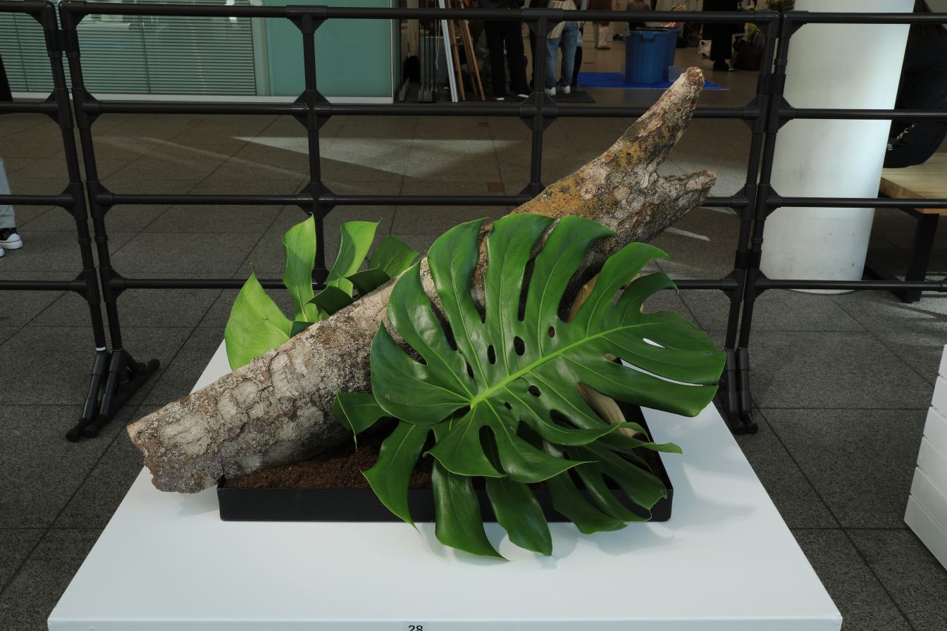 その自然のままの姿を、グリーン(モンステラ)と茶色(土)と共に表現したかった。