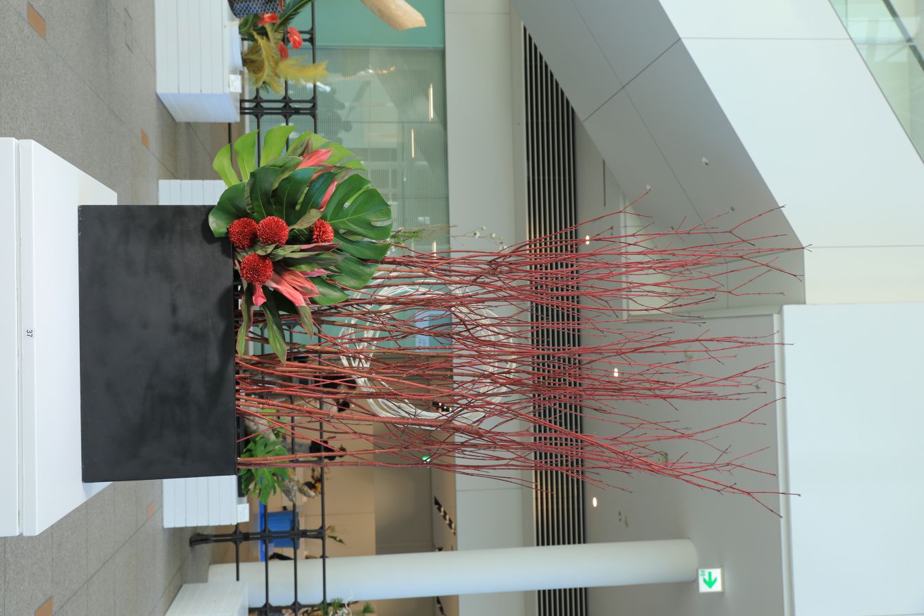 今回は、主役であるはずのミツマタの制作に苦労しましたが、アトリウムの開放感のある会場に助けられました