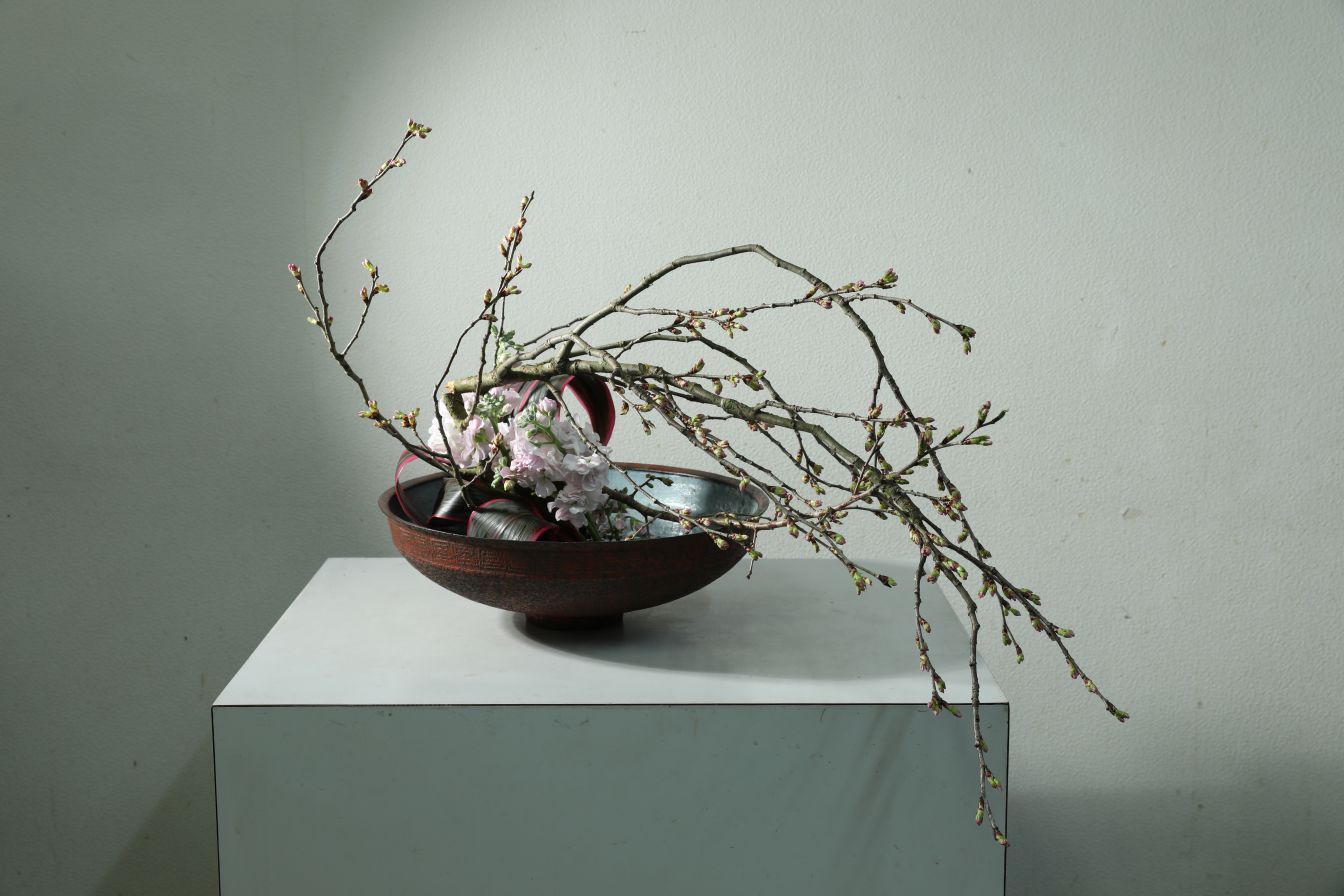 桜の枝は矯めてもポキッって折れないので、自分好みの枝ぶりを作るのに適した花材です